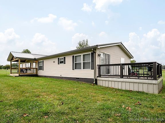 Beautiful corner lot with so much space for extra activities, or more buildings if you need them! Very well maintained manufactured home with over 1950 sq. ft. Covered front AND back porch so you can sit and watch the world go by. Cozy living room with gas fireplace. Kitchen boasts a breakfast bar, eat-in area, tons of counter space, and cabinets. Beyond the kitchen you'll find the formal dining room and family room. There is a half bath right off the laundry room, convenient for not tracking in dirt from outside throughout your home. The bonus on this property is the huge 2400 sq. ft. pole barn with overhead doors, a car lift, a man cave that's heated and cooled, AND has a half bath. So much potential here for entertaining, or escaping by yourself. Driveway has been resealed, septic was just pumped, and LP gas tank was just filled. You don't want to miss this one. Seller is selling it AS-Is, but welcomes inspections. Sq ft & rm sz approx.
