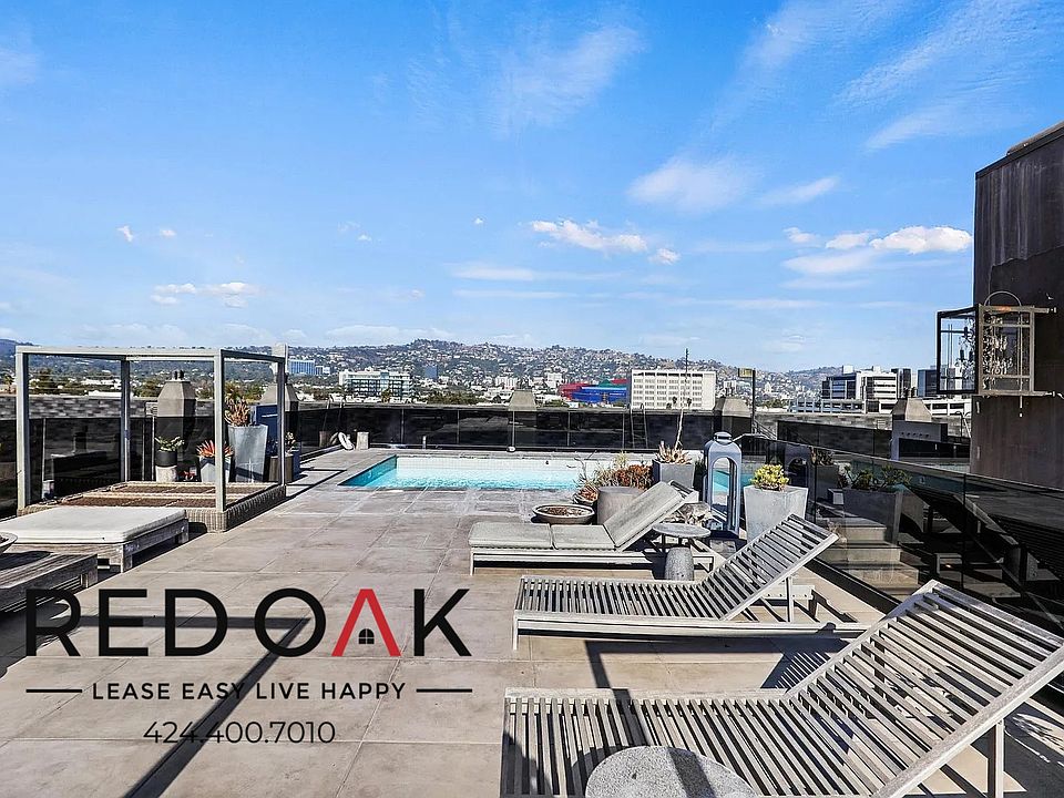 Spacious Studio with Private Balcony, Scenic Rooftop Deck and Refreshing Pool, Fireplace, Central A/C, Stainless Steel Appliances, On-Site Laundry, and Included Parking ~ Located in the Heart of Beverly Hills! Welcome to Your Sun-Drenched Retreat! Key Features: - Sun-Kissed & Airy: Abundant natural light streams through expansive windows, offering stunning views and a warm, inviting atmosphere. - Polished Porcelain Tile: Exquisite floors of polished porcelain tile offer a sophisticated look that's easy to maintain and reflects natural light beautifully. - Climate-Controlled Comfort: Stay comfortable year-round with convenient central air conditioning and heating. - Cozy Fireplace Ambiance: Perfect for creating a relaxing mood on cooler evenings. - Modern Kitchen: Whip up your meals in the kitchen equipped with stainless steel stove/oven, dishwasher, microwave, refrigerator and ample hardwood cabinetry. - Spa-Like Bathroom: Pamper yourself in the relaxing soaking tub with rain-style showerhead, well-lit vanity with a grand mirror, and modern fixtures. - On-Site Laundry: A washer and dryer are conveniently located on-site making chores easier. - Parking: Take advantage of the convenience of an included parking space, enhancing your living experience. - Pet-Friendly: Your furry friends are welcome to join you in this comfortable home for a nominal monthly fee. - Amazing Roof-Top Deck: Soak in breathtaking panoramic views of Beverly Hills from the stunning rooftop deck, complete with a refreshing pool for ultimate relaxation. - Unbeatable Beverly Hills Location: Situated just moments away from the renowned Beverly Center and other iconic destinations, this residence offers the epitome of luxurious city living. Don't miss out on the opportunity! Available for an immediate move-in. LEASE TERMS: One Year Lease Pictures and descriptions are of EXACT unit Square Footage is approximate Showings may not be 1-on-1 All information must be validated on Red Oaks Website since 3rd party websites can feed incorrect information.