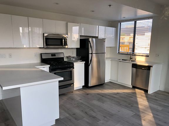This is a front facing unit, Beautifully updated. All modern style featuring 2 beds 2 baths, hardwood throughout the unit, including The bedrooms, Caesar stone countertops, all new windows and WASHER AND DRYER inside the unit with Central AC and heat, 2 parking spaces. The building has been completely remodeled with new lobby . available now