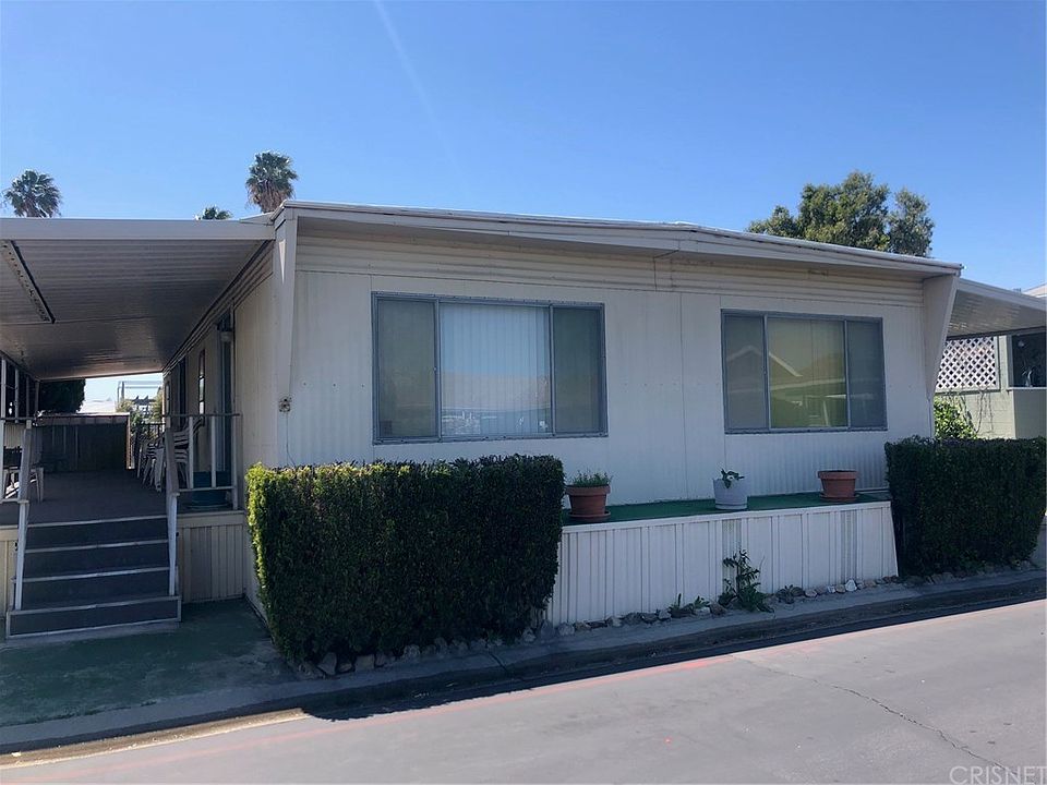 EXCLUSIVE OFFERING WITH PRIME LOCATION ACROSS FROM POOL,SPA AND CLUB HOUSE! EXTERIOR AND INTERIOR PHOTOS TO FOLLOW HOME FEATURES INCLUDE:1400 Square Feet of Light, Open Living Space!Generously Sized Living Room, Formal Dining Room with Built In Buffet and Display, Kitchen with abundant counter space, breakfast seating, sufficiency of cabinets and appliances! Master and Guest Bedroom, Master and Guest Bath with Walk in Shower, Enormous Entertainers Entry Porch, Earthquake Bracing, Central Air Conditioning/Heating, Home needs upgrading and seller is open to reasonable offers. 2-3 Car Covered Carport, 2 Companion Sheds with Low Space Rent of 975.00. Welcome to 55 Plus, Elite, Resort Style Community with Unencumbered Living. Canoga Mobile Estates is a People and Pet Friendly 55+ Hospitable Home Community. Gleaming Pool, Spa, Clubhouse, Exercise Room are few of the wonderful amenities. Monthly Social Gatherings & Events, Convenience to 118 Freeway, Public Transport, Metro Orange Line, Shopping, Dining. Beautifully maintained, Superior in Management make this 5 Star Rated Community a Shining Star in San Fernando Valley.