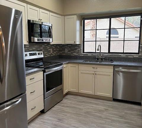 Remodeled not that long ago with granite countertops, vinyl plank flooring throughout and paint.