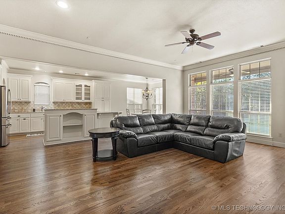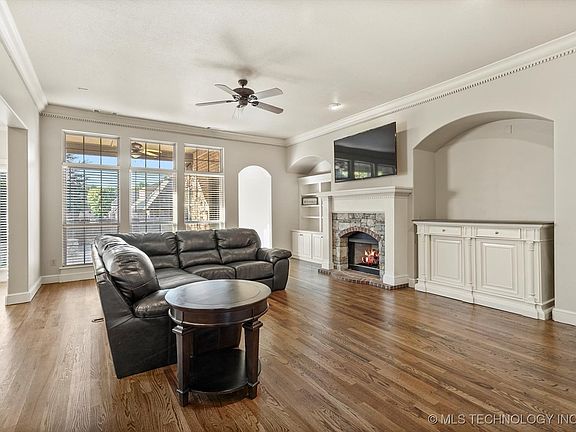 Freshly painted, new blinds & stunning HW flooring, this spacious 5-BR home offers everything you’re looking for! Featuring a home office, formal dining room, 3 full baths, & 3-car garage, all nestled on a quiet street in the highly sought after Bixby School District. Enjoy the desirable open floor plan with soaring 10’ ceilings, cozy stacked stone FP, & gorgeous kitchen island with granite & SS appliances. Main level includes an office, primary suite, & guest BR with Pullman bath. Upstairs, you'll find a large game room, 3 additional BRs, with a convenient Jack & Jill bath. Step outside to a beautiful patio & backyard, perfect for relaxing or entertaining. Located near restaurants & shopping, also part of a community with a neighborhood pool…this home truly has it all!