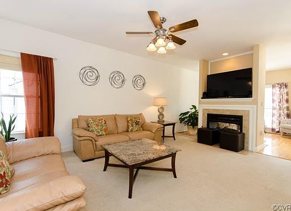 Move right in! Picture perfect home in Bayhill Point is surrounded by gorgeous landscaping and a generous tree buffer for privacy. Welcoming front porch and spacious deck offer outdoor living areas; beautiful backyard will please your little ones and pets alike! Inside, the 2-story foyer opens to formal dining (or first-floor study) as well as living room, all with hardwood floors. Striking two-sided gas fireplace warms the living and family room s. Updated kitchen with hardwood, new stainless appliances and sunny breakfast area. Master suite features an arched window and cathedral ceiling, and is completed by a fantastic bath separate shower, corner tub, custom tile-work and double vanity. Three additional bedrooms come complete with ceiling fans & lighting, and generous closet space. Great location in this master-planned community offers swimming pool & recreational facilities t oo!