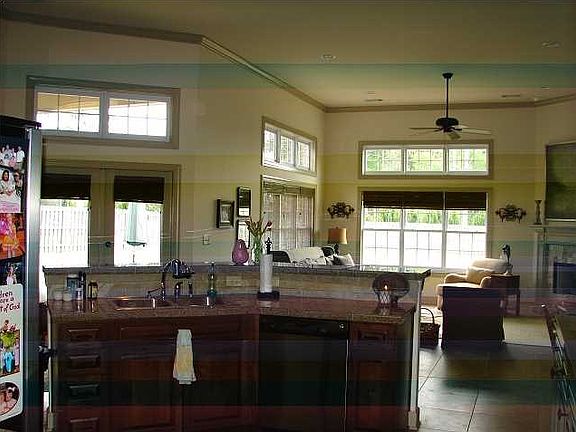 This beautiful home in the estate section of Wyndridge and shows like new. This open floor plan features 12' ceilings in the living areas and kitchen. The covered porch is off of the kitchen and overlooks a very large yard. Hardwood floors in the foyer, living room, dining room, and hallways. The large kitchen features 20" ceramic tile flooring, granite countertops, tumble marble back splash, stainless steel appliances, and a breakfast bar. The great room is open to the kitchen and offers a beautiful fireplace, tile floors, and a lot of windows for natural light. The master suite is separate. The master bath features a large separate shower, jetted tub, and separate vanities. There is a lot of storage and a circular drive. THIS ONE OWNER HOME IS A MUST SEE.