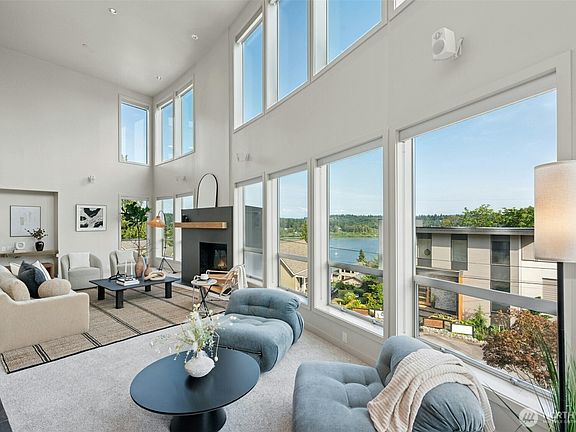 Immaculate contemporary sitting above Juanita Bay w/spectacular views of Mt Rainier, Bellevue skyline, & Lake WA! Built in 1997, this newly updated 3,290 SF, 4 BD, 2.5 BA home feat 2 story living room w/walls of glass framing lake & mtn views. Chef’s kitchen w/new quartz counters, walk-in pantry & wet bar. Elegant dining room flows out onto view deck. Primary BD w/private view balcony, walk-in closet & 5-piece BA. Lower level feat bonus room/gym, 2nd pantry & 2-car garage. Lush professionally landscaped backyard w/deck & built-in seating areas. Updates include new carpet, interior & exterior paint & new BAs. Access to private beach. Just steps from Juanita Village, 5 mins to downtown Kirkland & I-405. Don’t miss this incredible opportunity!