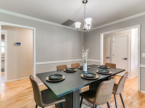 Beautifully updated and spacious, this is a fully furnished two-story home with fully fenced back yard. The perfect place to call your next transitional home. We offer short term lease stays for corporate housing, disaster relief or week long vacation needs. King sized bed downstairs with en-suite with 4 additional rooms upstairs with 5 beds, 3 queens and a set of twins in the game room. Plenty of at home office space, this home is located in a quiet centrally located neighborhood. Close to entertainment and restaurants. Two full baths and an additional half bath downstairs, this. property also has ample eating space with two dining locations and bar top space. There's everything you could need in this well appointed kitchen. We look forward to sharing this serene property with you!