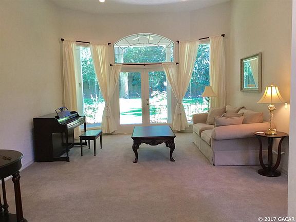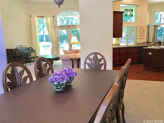 Beautiful Bullard built home that has been gently lived in. A large fenced premium .62 acre lot backs to a spacious wooded buffer for privacy. A double door entry leads you to a spacious living room and dining room with art niche, an island kitchen has Busby cabinets with plenty of drawers and loads of counter space, all appliances included, pantry, breakfast bar and breakfast nook, kitchen and breakfast area has wood floors, kitchen opens to family room with fireplace, separate study/5th bedroom near owners suite, large owners bedroom with sitting area, luxury bath with double vanities, jetted tub and separate shower, convenient pool bath for future pool, high ceilings and wide doorways enhance this home, covered patio, 3 car garage, 2 hot water heaters, 2 HVAC's each with April Aires, huge floored attic area for storage, 50 amp service at garage, reclaimed water for low irrigation bills, attractive doggie fence. Haile Plantation is an award winning community with trails, Village Center with restaurants, shopping and business's, Market Square, parks and optional Haile Plantation Golf and Country Club.