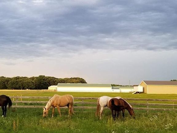 Beautiful horse property on 20 acres with 19 stalls in heated barn, hay loft, wash bay, heated office, tack and feed room, indoor riding arena 55' x 110', large outdoor riding arena, run-in shelters. Yard has inground sprinkler, many updates to the home included new paint, carpet, siding and roof. Home has a full walkout basement and large deck. Located on quiet road with an abundance of wildlife. Above ground swimming pool with great views. Great opportunity for horse boarding, riding lessons, training or personal use. Income potential.