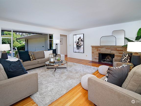 Welcome home to this mid-century gem! Nestled in a serene setting, it offers easy 1-level living, genuine hardwood floors, & newer A/C, too! Gather around the fireside in the spacious living room with adjacent dining room. A bright, cheerful kitchen flows into the family room with lofty, open beam ceilings & access to the expansive patio. Catch up on work in the office nook, or retreat to 4 bedrooms including your primary suite with private 3/4 bath. The level, fully-fenced back yard + mature landscaping expertly designed by a master gardener create a lush oasis. You’ll love this ideal neighborhood, just a stroll away from Island Park Elementary School & parks. Easy I-90 access to Seattle/Bellevue makes this a perfect place to call home!