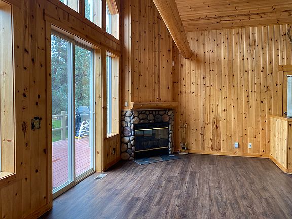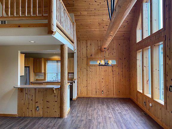 Large back deck, complete with privately screened hot tub is perfect for entertaining. Chalet features a cozy river rock fireplace, vaulted ceilings and large windows for an abundance of natural light. Stainless steel appliances in the kitchen. Primary bedroom is located upstairs with in-room Jacuzzi bathtub, and has a loft which could be configured as an office. Newer LVP flooring through the living, dining, hallway and kitchen.