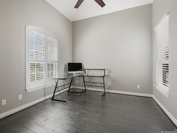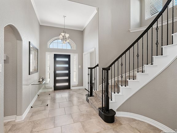 Get it all with this one! House on the Hill with a View* Just shy of a half Acre lot* 4 bedroom 3.5 bath with a 3 car garage* 150K Pool, hot tub with a Swim Up Bar and Surround System that plays from pool to Covered Patio*Enjoy watching the Fiesta Texas fire works from your Own Jacuzzi*what good is a Resort style back yard with out a beverage fridge nicely placed in utility room* One of the newest homes in a Established Gated neighborhood*Space between you and your neighbors, no behind neighbor and only 7 homes in the whole Cul de sac*Totally updated with Modern colors inside and out*New black roof to match the exterior*Primary bedroom with Wood Accent wall and Real Wood black stained floors*Custom Shutters for front windows*Elegant entry with updated Lighting, Sweeping Staircase leading to 2 Juliet lookouts at Cat walk and Loft*Media Chairs and Surround Sound convey, just bring your tv!*Granite everywhere in all Bathrooms, Kitchen Backsplash, and even Window trim living room/Breakfast nook*Electric vehicle charger ready in garage*Only a 1 owner home with 2 rooms never even lived in*Home was built 2016 and was not closed and lived in until Dec 30, 2016* Great location only 1 mile from 1604, Helotes address, Brandies school district, near Tesla, La Cantera, and I10*Ready for a new Home Owner!
