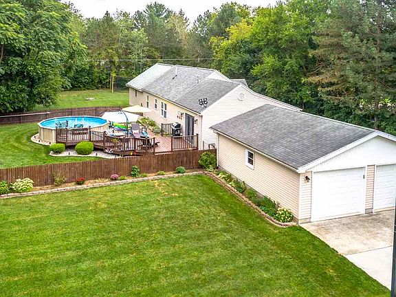 Quiet country setting ranch home situated on a corner lot just under one acre and located 4 miles outside of downtown Frankenmuth just south of the Cass River. The house has been extremely well maintained, including renovation in 2016 and offers 3 bedrooms and 2 full baths including a 16x24 master suite with cathedral ceilings, a custom built large walk-in closet, dual vanity sink with granite countertops, and walk in tile shower and granite countertops in both bathrooms. The kitchen area is spacious with a walk in pantry and offers an eat in area as well as a separate formal dining room. The living room includes a built in fireplace, Pergo flooring and French doors out to the amazing deck and pool area. The outdoor oasis includes 2 fire pit areas, large deck, above ground pool, fenced in yard and professionally landscaped around the entire perimeter of the home with stone and perennials. Commission to be paid on net sales price.