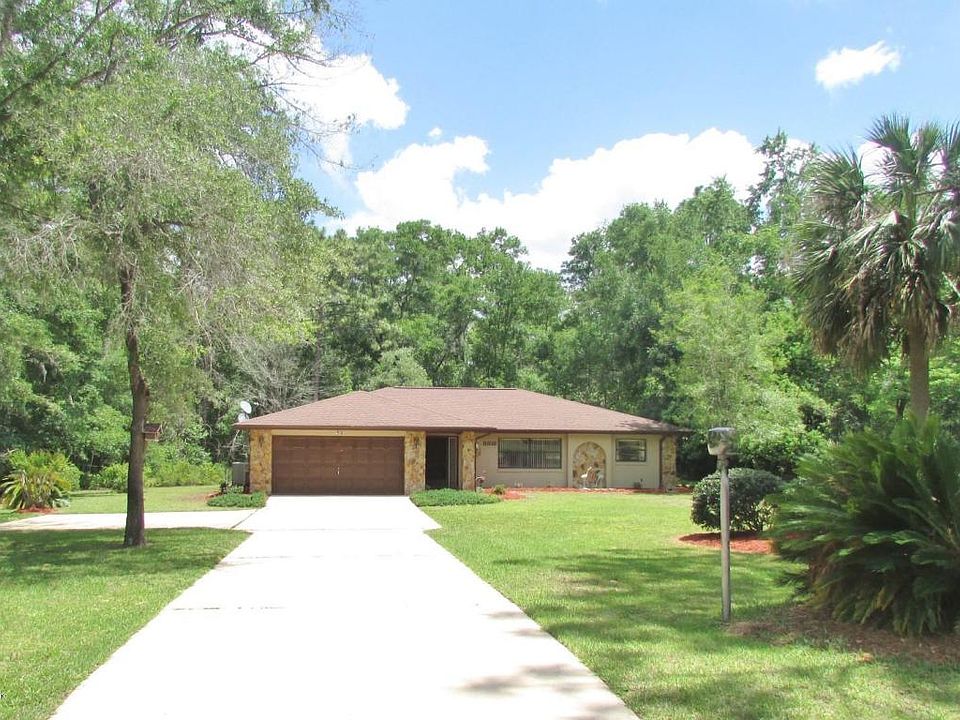 A True Country Charmer! 3BR/2BA w/2-Car Garage Nestled Beautifully on Peaceful 1.03 Acres w/Picture-Perfect Planting Gardens, Palms & Natural Oaks Creating a Park-Like Setting for Serenity & Privacy. This Irresistible Classic Home Exudes That Southern Comfort Charm Throughout and Has Been Beautifully & Recently Up-Dated with Brand New Wood Laminate Floors + Stylish New Carpet. The Exterior Of Home Sparkles With Newly Painted Earth Tones Coupled With Fresh New Landscaping. Special Features Incl. Split BR Plan, Living RM + Family RM Centered Around Eat-In Kitchen w/ Serving Bar, Split Bedroom Plan, LG Owners Suite w/Spacious Bath + Walk-In Closet, 2 Nice Sized Guest BR's w/Bath + Expansive Screen Enclosed Lanai w/ Lovely Views of Nature! 1842 SQ Ft L/A..Perfect for Down-Sizing or 2nd Home
