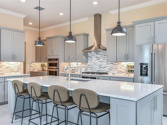 Stylish white cabinetsOversized islandUpgraded quartz countertopsEnclosed flex roomGourmet kitchenImpact glass windowsUpgraded interior doors