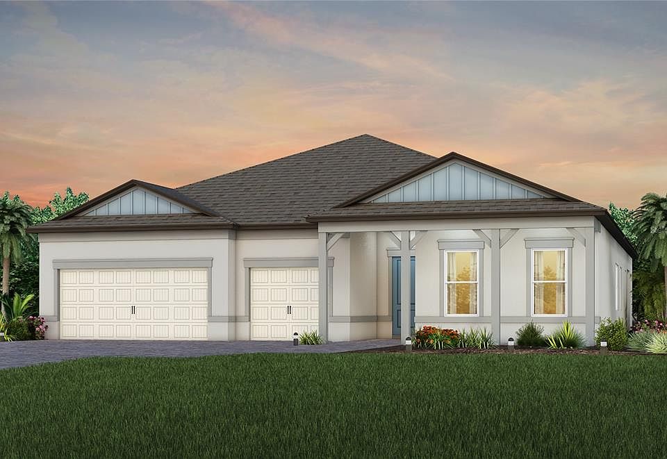 Final opportunities to purchase a new construction home and experience a new level of retirement living at Del Webb BayView. This active adult community is located 30 minutes from downtown Sarasota, St. Petersburg, and Tampa. BayView is centered around signature resort-style amenities so you can stay active and where your neighbors become long-time friends. This stunning Renown floor plan is the dream home you’ve been looking for. This home has all the upgrades you’ve ever wanted with a gourmet kitchen featuring an oversized island, single bowl granite sink, stylish white cabinets, upgraded quartz countertops, tiled backsplash, Whirlpool stainless steel appliances including a built-in oven and microwave, cooktop with a range hood, dishwasher and refrigerator. There is luxury vinyl plank flooring in the main living areas, flex room and bedrooms and 12”x24” tile flooring in the baths and laundry room. The Owner’s suite boasts 2 large walk-in closets and the Owner’s bath has dual sinks and a walk-in shower. Bedrooms 2 and 3 both have private full baths and walk-in closets, and there’s a versatile enclosed flex room, ideal for a home office or entertaining space. Additional features and upgrades include speckled epoxy flooring in the 3-car garage with 4’ extension, upgraded interior doors, 2” faux wood blinds throughout, impact glass windows, upgraded lighting and door hardware, LED downlights in the gathering room and a Smart Home technology package with video doorbell. Enjoy peace of mind with Pulte’s transferable, 10-year Limited Structural Warranty that covers materials and workmanship in the 1st year, workability of plumbing, electrical, HVAC, and other mechanical systems through the 2nd year, various types of water infiltration and internal leaks through the 5th year, and the structural integrity of the home through the 10th year. Plus, we’re currently offering limited-time incentives and below-market rates!