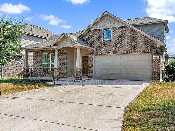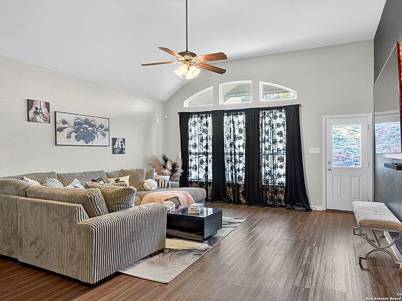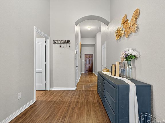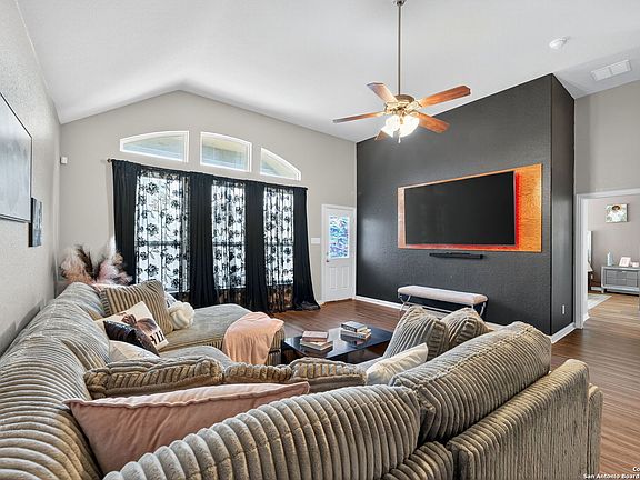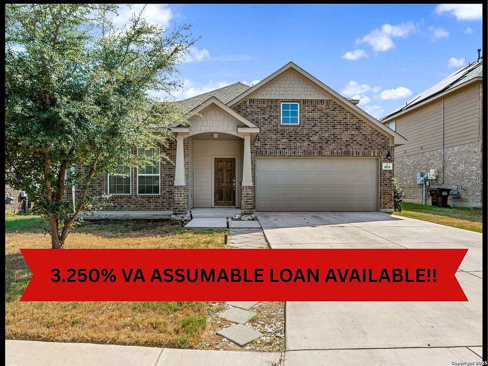 ASSUMABLE VA LOAN 3.250% FOR QUALIFIED VETERANS! Welcome to this beautiful 4-bedroom, 3-bathroom home located in the highly desired Parc at Escondido community. Built by Castlerock Homes, this 2,511-square-foot residence combines modern efficiency with timeless comfort. The home features soaring ceilings, large windows that fill the space with natural light, an open floor plan, a separate dining area, solar panels for energy savings, and a spacious game room. The kitchen is designed with both style and functionality in mind, offering a custom tile backsplash, walk-in pantry, and an abundance of counter space-perfect for cooking and entertaining. All bedrooms are conveniently located on the main level, with a versatile game room upstairs that can serve as a media room, playroom, or home gym. The primary suite is a serene retreat showcasing large windows, elegant wood floors, and a spa-like bathroom complete with two separate sinks, a garden tub, separate shower, and a generous walk-in closet. The backyard is ideal for outdoor enjoyment, featuring a covered patio, privacy fence, and an above-ground pool. Conveniently located near JBSA-Randolph and Fort Sam Houston, shopping, restaurants, and major highways, this home offers the perfect blend of luxury, efficiency, and convenience.