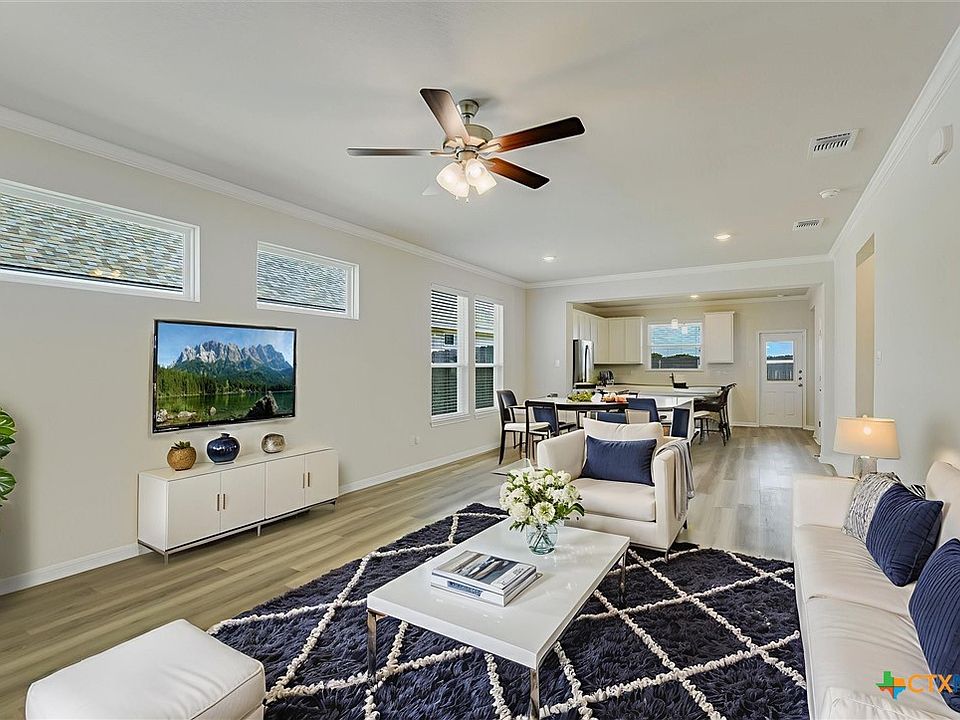 Welcome to a like-new home that’s move-in ready, without the wait of new construction!! This charming house was owned but rarely lived in and is beautifully maintained. It features 4 bedrooms, 2 bathrooms and offers a modern open-concept layout designed for both everyday living and effortless entertaining. From casual weeknights to festive gatherings, the spacious kitchen, dining, and living areas flow seamlessly together, creating a warm and inviting atmosphere. The kitchen has sleek finishes and generous counter space, perfect for meal prep, coffee chats, or hosting friends and family. All rooms, including the bedrooms, feature ceiling fans for extra comfort year-round. A front room offers flexible use as either a fourth bedroom or a home office, allowing you to customize the space to suit your needs. The private primary suite is thoughtfully tucked away from the other bedrooms, offering a peaceful retreat with a large walk-in shower, dual vanities, and a spacious walk-in closet. You’ll love how lightly this home has been lived and the kitchen appliances are in near-new condition. As a bonus, the refrigerator, washer, and dryer convey with the sale, providing exceptional value and making your move even easier!! Step outside to enjoy a covered patio and peaceful backyard setting with no rear neighbors, an ideal space for privacy as you enjoy morning coffee, evening relaxations, or weekend barbecues. A sprinkler system is another bonus to keep your yard looking great. Lake Belton is a few miles away for boating, fishing, and outdoor fun. You have quick access to highways for easy commutes to Temple, Belton, Waco, Killeen, and Austin. This amazing home offers comfort, value, and the feel of something brand new, without the new-build timeline. Don't miss your chance to see this exceptional home before it's sold. Book your showing today!!