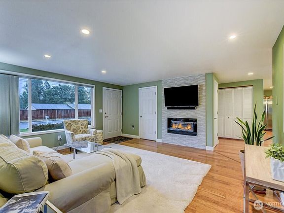 Beautifully updated 1-level home with 3 bedrooms, 2 baths, and a versatile den. Enjoy comfort year-round with a Lennox heat pump and AC, plus enjoy cozy evenings by the electric fireplace. The Lrg fully fenced yard includes professional landscaping, garden area and a above-ground sprinkler system. Entertain easily with your 400 Sq. ft. Timber Tech Deck, including a barbecue patio with electrical hookup. Enjoy a 10'x14' shed with electrical (use your imagination).Tinker in the custom 50'x12' garage with 30A Subpanel W/20A outlets. Walk to May Creek Park trails and Waterline Trail to Lake Boren Park for outdoor fun. Conveniently located near shopping, dining, and freeway access for easy commutes. Hardiplank siding.