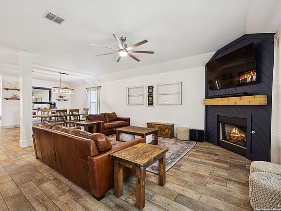 Nestled in the coveted Sonoma Ranch community, this beautifully updated single-story residence blends refined finishes with effortless everyday living. Step inside to a warm, light-filled interior where elegant ceramic tile flooring, soft designer tones, and updated lighting create a calm and inviting ambiance. The remodeled kitchen is the true heart of the home, featuring upgraded countertops, a stylish backsplash, expanded island, and painted cabinetry perfect for gathering with friends and family. A dedicated office offers quiet focus, while the primary suite invites relaxation with a spacious walk-in closet and a spa-inspired walk-in shower. Step onto the covered patio and unwind in a private, landscaped backyard designed for slow mornings and cozy evenings. With a new roof, water softener, water heater, and privacy fence, this home pairs modern comfort with timeless elegance. Ideally located near top-rated Northside ISD schools, premier shopping, and dining, and just minutes from the recent openings of the I-10 / 1604 interchange, providing exceptional access and a seamless commute to major destinations across San Antonio.