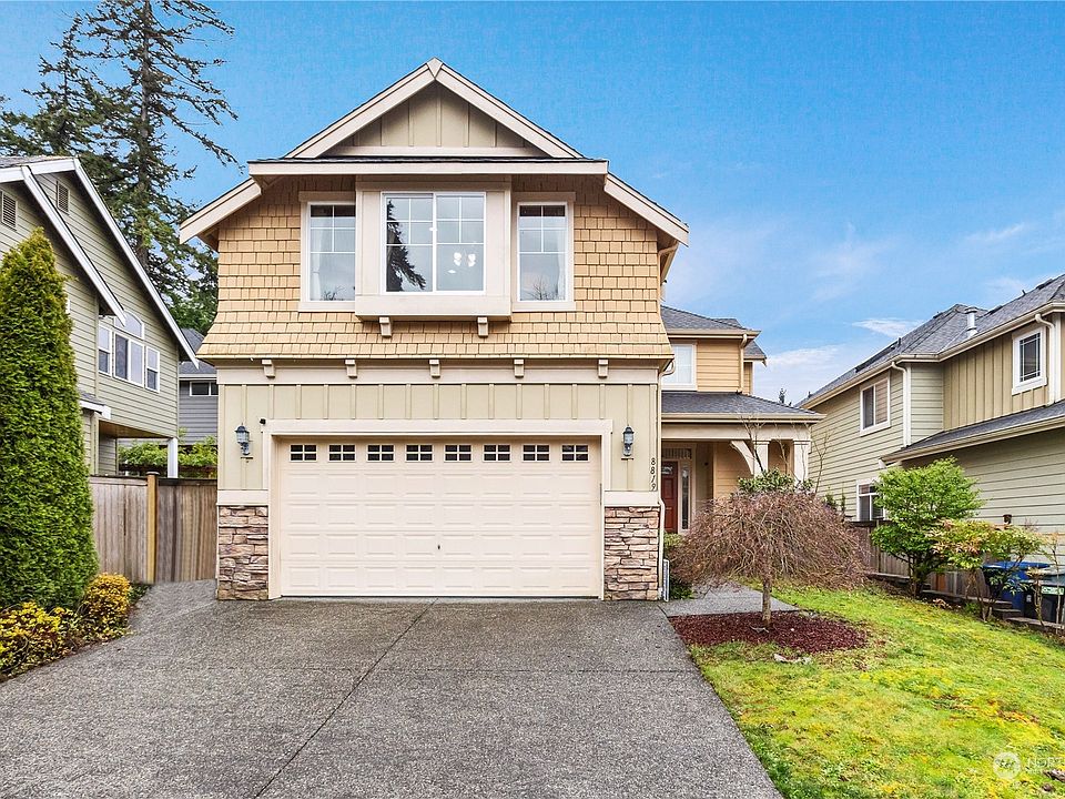 Step into luxury with this spacious 5-bedroom, 2.75-bathroom home spanning 3360 square feet over two stories, complete with central A/C. Enjoy the cozy ambiance of the living room's gas fireplace and the convenience of the sprawling kitchen with high-end stainless steel appliances, a gas cooktop, and a large pantry. The master suite offers a tranquil retreat with a sitting area and gas fireplace, accompanied by a luxurious master bath with a soaking tub, shower, double vanity, and walk-in closets. Entertain in the generous dining area and bonus room with a wet bar, and appreciate the convenience of an office and 3/4 bathroom on the main floor. Tucked away in a quiet cul-de-sac, this home is served by the acclaimed Northshore schools!