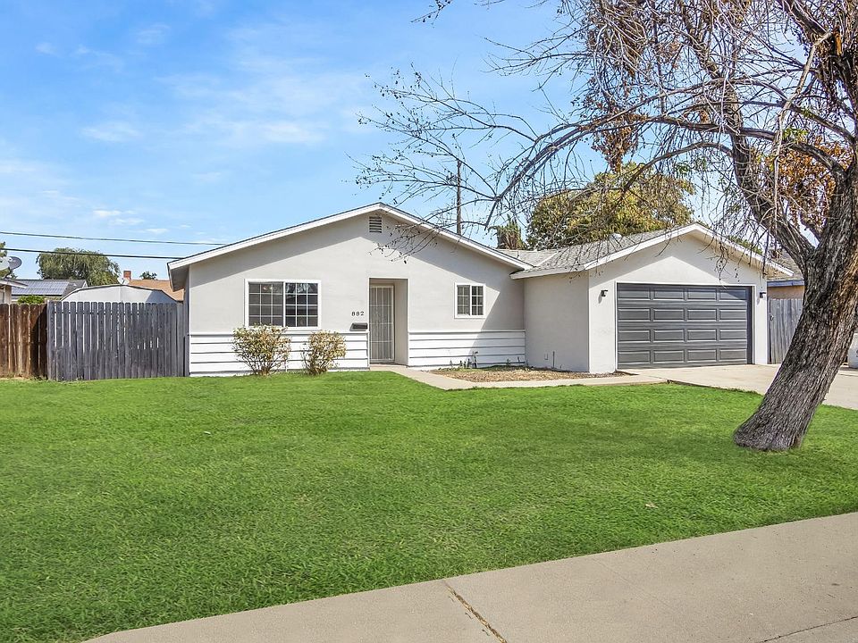 Stroll along quiet sidewalks to beautiful Heritage Park from this fully renovated1,200 sq ft home with a two-car attached garage. Adorned in serene earth tones, new lighting, and updated wood-look flooring, the open floorplan features three bedrooms and two bathrooms. Adjoining the large living room, the dining area is served by the bright and light-filled kitchen with granite counters, white cabinets, and satin nickel hardware. A sliding glass door connects to the oversized private lot with an open-air patio. Spacious closets offer sufficient storage space in each bedroom, with the primary suite affording owners additional space with a walk-in closet and an updated en-suite bathroom with a pedestal sink and decorative tile detail in the shower. Lemoore is South of Fresno, just a two-hour drive east of the Pacific Ocean. Settled in the San Joaquin Valley region. Residents can enjoy Lemoore's parks, eateries, and boutiques before heading into the mountains or out to the beaches. Come explore all that this home has to offer by scheduling your private tour today.