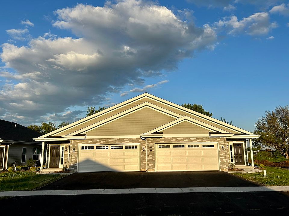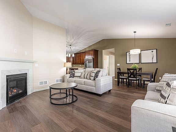 Modern Luxury Meets Everyday Convenience in a New Construction Townhome! Discover the perfect blend of sophistication and functionality in this newly constructed townhome. With a modern open-concept layout, the kitchen, dining, and living areas flow seamlessly-perfect for entertaining and daily living. The living room boasts a cozy gas fireplace and dramatic cathedral ceilings, adding warmth and elegance to the space. The gourmet kitchen is a chef's dream, featuring 42-inch upper cabinets with rich crown molding, granite countertops, and stainless steel appliances, combining style and practicality with ample storage. This home includes two spacious bedrooms and a versatile flex room that can be converted into a third bedroom or used as a home office. The primary suite is a relaxing retreat, complete with a walk-in closet and an en suite bathroom featuring a double vanity and an oversized shower. Full Basement with an egress window that's great for storage or finish to suit your needs. A combination laundry, mudroom, and storage area conveniently located off the garage adds to the home's functionality. The attached, fully insulated garage is drywall-finished and includes an insulated door. Enjoy maintenance-free living with an HOA that handles snow removal and lawn care, giving you more time to relax and enjoy your surroundings. Ideally located near parks, walking paths, schools, restaurants, and shopping, this townhome offers unmatched comfort, style, and convenience. Experience the best of modern living. Photos are of Model home. Pet friendly.
