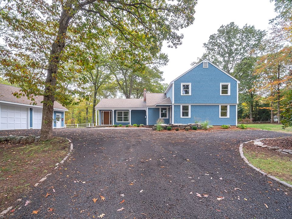 Welcome to 882 Killingworth Road, a beautifully updated 4 bedroom, 3 bath Colonial on 2 acres of serene, picturesque land in central Haddam. Combining classic New England charm with modern convenience, this home offers not only elegant living but also income potential, thanks to its 2017 built barn with finished guest loft, perfect for Airbnb, studio, or in-law use. The main home spans 2,286 sq ft, with refinished hardwood floors, a bright, open layout, and a crisp, coastal inspired palette. The well appointed kitchen flows seamlessly into the dining and living spaces, with sliding glass doors opening to a newly installed stone patio that overlooks the in-ground pool and expansive yard, ideal for entertaining or quiet evenings under the stars. The main level primary suite is a standout: a spacious full bath with a walk-in shower, beautiful tile flooring, convenient laundry setup, and a generous walk-in closet. Upstairs, three roomy carpeted bedrooms serve family or guests, sharing a full bathroom with a tub. The freshly painted blue exterior blends beautifully with mature trees and thoughtful landscaping. A detached two-car garage and the barn offer flexible storage and use options. Above the barn sits a 288 sq ft loft apartment with vaulted ceilings, skylights, exposed beams, wide-plank pine floors, a full bath, and a kitchenette, an ideal in law suite or income generating unit. With comparable Airbnb listings in the Haddam/Chester/East Haddam area posting $175-$225+ per night (seasonally strong given the CT River Valley demand), this property presents a compelling opportunity for supplemental income while you enjoy your own home. Located just minutes from Haddam village, the Connecticut River, and Cockaponset State Forest, this home offers the perfect blend of privacy, location, and potential.