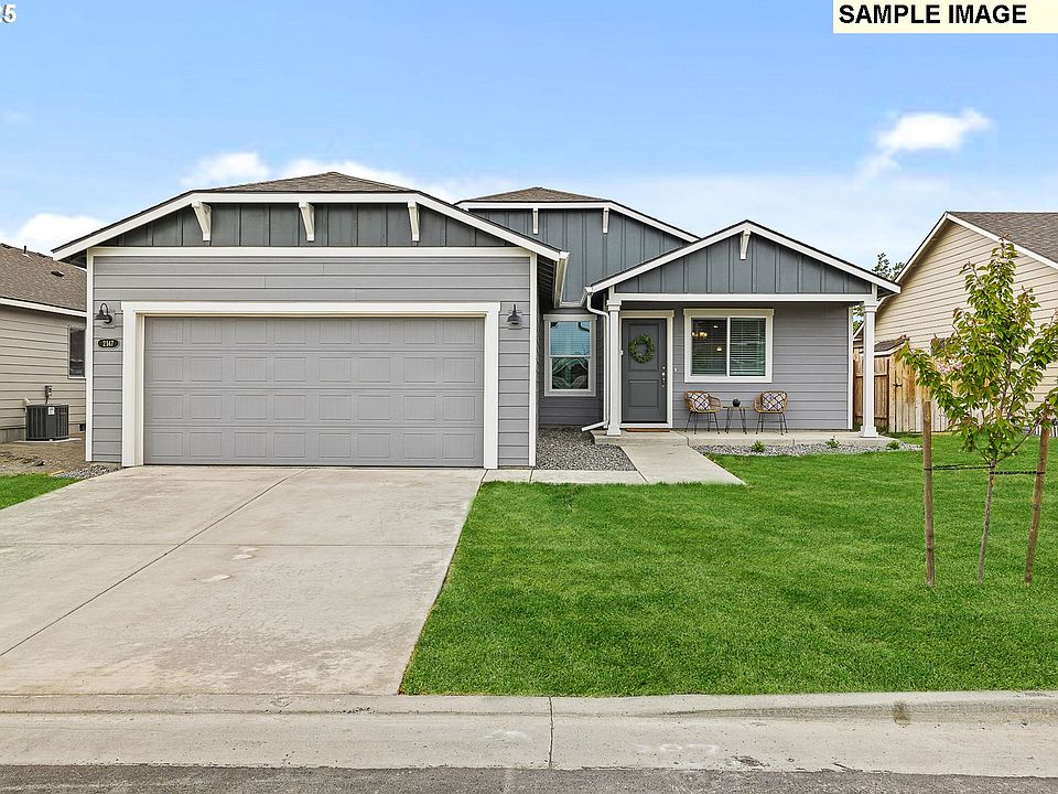 LOT:UM04 - Under construction - Estimated completion date January 2026 - This exquisite brand-new home offers the perfect blend of contemporary design and comfortable living, all situated in the new Upland Meadows neighborhood in Hermiston OR. This new 1249 SQFT home includes a deluxe chef's kitchen with quartz counters and stainless steel appliances including dishwasher and gas range. Luxurious primary suite with coffered ceilings and ensuite bath with walk-in shower. Great room open design with vaulted ceilings, 95% high efficiency forced air heating, air conditioning, electric fireplace, laundry room, RV parking, and concrete patio. The Camellia floor plan built by award winning builder MonteVista Homes.