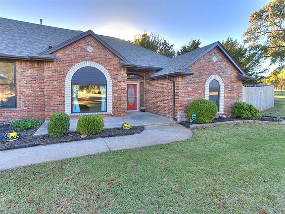 From the moment you pull up, this Blanchard home just feels right. Surrounded by peaceful countryside and tucked within the highly rated Bridge Creek School District, it’s the kind of place that instantly feels like home. Every space here has been thoughtfully updated — warm, inviting, and full of the little touches that make everyday life easier and more enjoyable. Step inside and you’re greeted with natural light pouring through brand-new windows, brightening up the open floor plan. The living room feels like the heart of the home — cozy yet elegant — with its remodeled fireplace, rich wood-look flooring, and detailed crown molding. It’s easy to picture everyone gathering here. The dining area opens up beautifully to the living area & kitchen, ready for family dinners or last-minute get-togethers. And the kitchen — it’s as functional as it is stylish. Granite counters, beautiful stained cabinets, a neutral tile backsplash, and stainless appliances including a gas range. There’s even a breakfast nook that overlooks the backyard, a perfect spot for quiet mornings overlooking the .8 acre property. The laundry and mudroom area is practical in all the best ways — extra cabinetry, a sink, and direct garage access to keep things organized and tidy. The primary suite feels like a retreat at the end of the day, complete with crown molding, soft natural light, and a private bath with dual vanities, a walk-in shower, and a custom makeup station. The wraparound closet doesn’t disappoint either. Three additional bedrooms offer space for everyone — whether that’s kids, guests, or a home office — each with ceiling fans and generous closets. Out back, the yard is made for relaxing and entertaining. The landscaping and custom woodwork make it a beautiful backdrop for weekends outside, and the oversized gate and RV/5th wheel carport add a level of convenience that’s hard to find. This home captures everything there is to love about life in Blanchard.