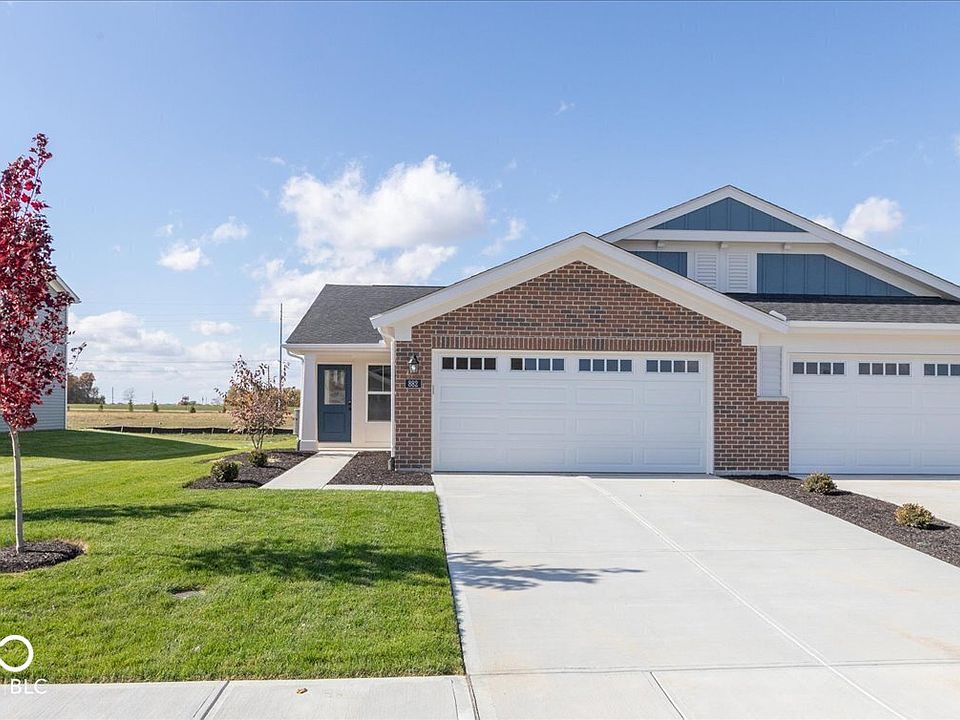 New construction by Fischer Homes in the beautiful new Parkrose community featuring the Wembley patio home floorplan with a Coastal Cottage flavor. This popular design features one-level living with a covered entry and a welcoming foyer. The spacious Family Room with fireplace is open to the Dining area and Island Kitchen. The kitchen is designed to entertain and prepare fabulous feasts with plenty of attractive cabinets with/42-inch uppers, quartz countertops, stainless steel appliances, and ample storage in the pantry. Two bedrooms are located at opposite ends of the home. The owners' suite is spacious, featuring an adjoining bath with a double vanity, a full shower stall, and a walk-in closet.