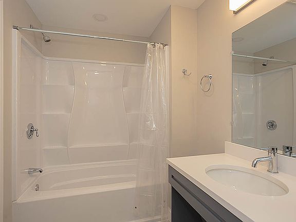 Tile bathroomQuartz countertopsStainless steel appliancesLarge windows