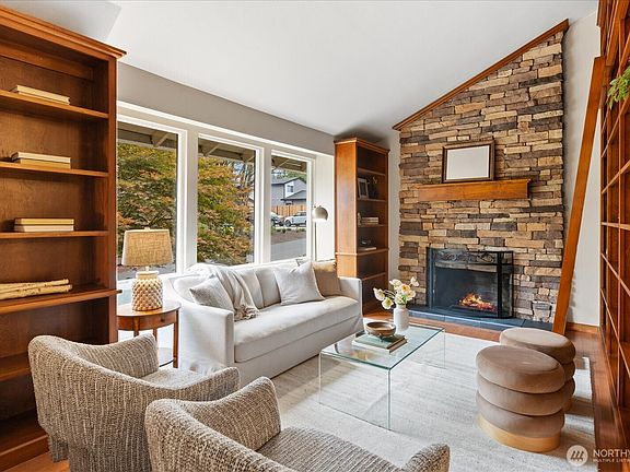 Amazing Seaview neighborhood, this home is located on a corner lot, quiet/double dead-end street. The kitchen/dining area overlooks the newer Trex deck & large serene and wooded back yard. Living area/library with vaulted ceiling and cozy stone fireplace. 3 beds, full hallway bath and primary suite with attached 3/4 bath complete the upper floor. Downstairs is an oversized family room perfect for media/game area. Updated baths with heated floors. Generous attached 2 car garage with storage. Seaview has abundant local parks and trails. Newer roof, brand new carpet and interior paint. Minutes to shopping, beaches, trains, restaurants, galleries and all Edmonds has to offer.