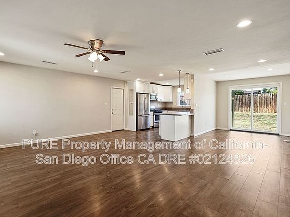 This delightful 1,350 sq ft home offers the perfect blend of comfort and convenience. Featuring: 3 spacious bedrooms 2 well-appointed bathrooms Open concept living area, ideal for entertaining Modern kitchen with sleek stainless steel appliances In-unit washer and dryer for added convenience Attached 2-car garage with bonus storage Includes a second refrigerator and built-in storage shelves Large fenced backyard, perfect for outdoor activities and pets The open floor plan creates a bright, airy atmosphere throughout the main living space. The kitchen, equipped with stainless steel appliances, is a chef's dream and flows seamlessly into the dining and living areas. Enjoy the convenience of in-home laundry with the included washer and dryer. The attached two-car garage offers ample parking and extra storage space, complete with a second refrigerator and custom shelving. Step outside to your private oasis - a spacious, fenced backyard that's ideal for gardening, outdoor entertaining, or simply relaxing in the California sunshine. Located in the desirable Spring Valley area, this home offers easy access to local amenities, schools, and major transportation routes. Don't miss this opportunity to make this lovely house your new home! Schedule a viewing today to experience all this property has to offer. Listing and marketing information provided is deemed reliable and accurate but not guaranteed - agent, broker, and resident should confirm all property information and specifications before entering a rental agreement. Visit our website to review our rental criteria prior to submitting an application. A $54 non-refundable application fee per adult will be charged. Every person over 18 who would reside at the property must complete and submit a rental application. We are a fair housing provider. All applicants will be subject to the same application criteria. All residents are enrolled in the Resident Benefits Package (RBP) for $39/month which includes HVAC air filter delivery, our best-in-class resident rewards program, identity protection, and much more! More details upon application. PURE Property Management of California DRE #02124826 *We do not accept applications from any 3rd party service including Zillow. Please apply on our website directly. Listing Type Amenities: washer/dryer, dishwasher, refrigerator, microwave, living room, ceiling fan, air conditioning, water heater, furnace (gas), reverse osmosis system, water softener, fenced yard-large