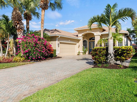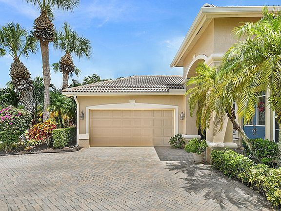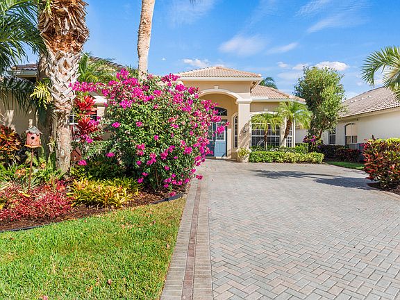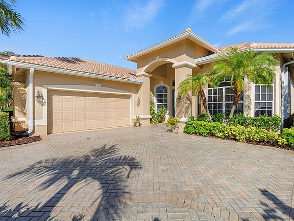 JUST REDUCED! Grab it now before the Season gets underway and someone else scoops it up! BRAND NEW ROOF IS FINISHED! Seeking a home with a water view...in a gated community...with access to optional golf and social memberships? Need a space where you can have room to entertain large groups? I've got the perfect match for you. This is a one-owner home presented with obvious pride of ownership and a warmth that grabs you as soon as you walk in. The claim to fame is that this was the first home built behind the South Gate of PGA Village back in 2000. This Seller has seen decades of changes through the walls of this home, and now they are ready to pass it on to another family that will make new memories. As soon as you enter the spacious foyer, you will notice the bright and open floorplan with an immediate view of the lake through the sliders. To the right is the formal dining room, where if you peek out the window, you'll see an AMAZING orchid plant hanging from the tree. When it blooms, it's stunning! To the left is the first guest room, which has a Murphy bed in the place of where a closet was intended. (Murphy bed will convey with sale.) There is a half-bathroom across the hall. Consider this a dual master, as the second guest room has its own bathroom with tiled shower and updated vanity.