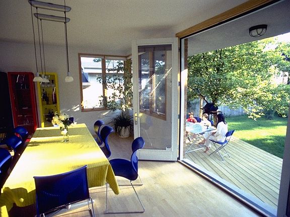 Contemporary classic. 20ft x 20ft - 2 story glass wall facing the garden open to wonderful public park with swimming pool, game courts and K-8 school. Open plan master suite with jacuzzi tub, separate toilet room and skylights includes loft area. Air bridge connecting to other bathrooms and open loft area with park view. High end baths with thermostatic valves, skylights and full tile walls. Tons of light with multiple windows and skylights, multi story recreational and work areas.