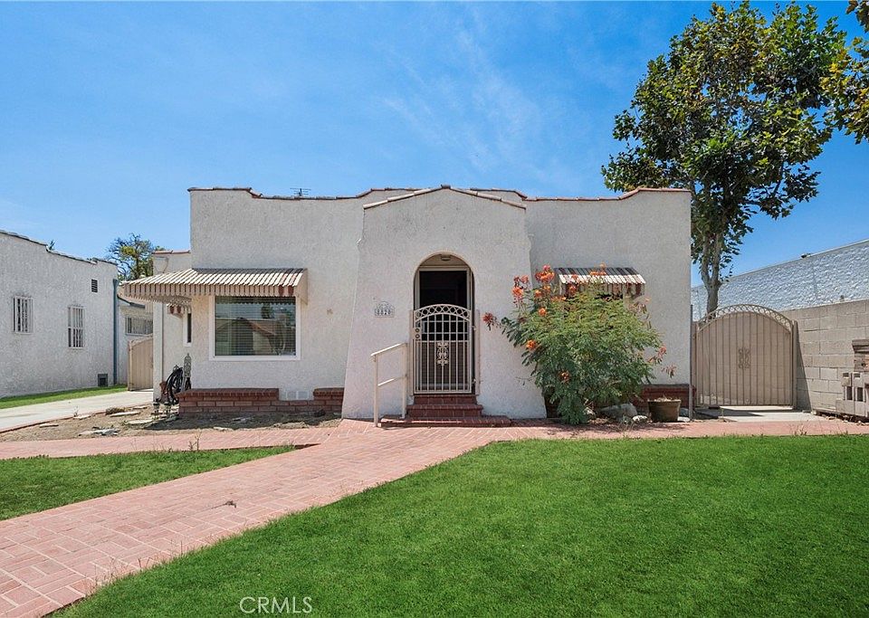 Charming Spanish-Style Home with Endless Potential. Now is your chance to own a charming Spanish-style home tucked away on a quiet cul-de-sac in a peaceful neighborhood. This 3-bedroom, 2-bathroom property offers a great layout and fantastic potential for customization. Step into the inviting living room, where natural light pours through double-pane windows, creating a warm and welcoming atmosphere. The spacious dining area is perfect for hosting family gatherings or holiday dinners. The kitchen offers generous counter space and plenty of cabinets—ready for your personal touch. An indoor laundry area leads to a large enclosed patio, ideal for use as a family room, hobby space, or bonus area. The primary bedroom features hardwood flooring and an en-suite bathroom with a walk-in shower. Two additional bedrooms and a full hallway bathroom provide comfortable living space for family or guests. One of the standout features is the oversized garage with an attached workshop—perfect for a home studio, creative space, or potential ADU conversion. A long gated driveway provides ample parking and added privacy. This home is full of opportunity and located just minutes from major streets and freeway access, combining convenience with the tranquility of a tucked-away neighborhood. With a little updating, this gem can truly shine!