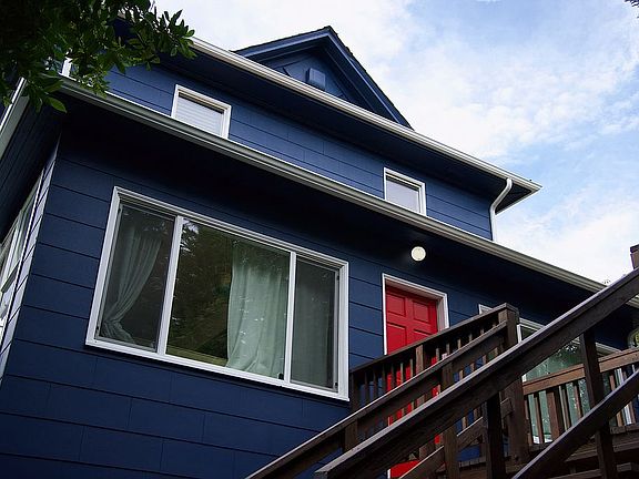 Two-story 1906 home with two upstairs bedrooms, ground floor studio/home office, and unfinished basement for storage or potential to finish and add more square footage. All windows look out on surrounding yard with cedar and yew trees. Plenty of space to garden.