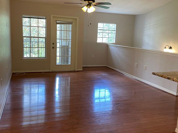Entrance to the patioGranite countertopsHigh ceilingsOpen floor planGlass mosaic backsplashUpgraded cabinetryWalk-in closet