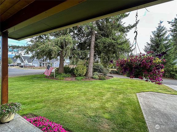 Beautiful custom built home, 16,000+ sq. ft. lot on Lynden's east side. First time on the market! Covered front porch leading into elegant entry, main floor mainly solid wood floors, open main living room & fireplace, high ceilings, open to dining & gourmet kitchen w/center island, eating bar & granite. Main floor primary suite, plus office/bedroom. Upstairs landing for office, spacious bedrooms & bonus room. Lower has game room space, sauna, 2nd living room, basement workroom, craft room or another office. Brand new dishwasher & leaf filter gutter system, covered outdoor living w/vaulted wood lined ceiling, skylights & steps leading to extended patio. Mature trees, gardens, RV parking, central vac & A/C. Home is in immaculate condition!