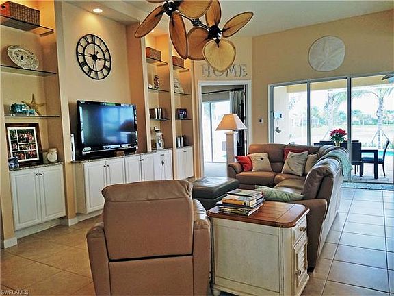 Spectacular Oakmont model with screened in-ground pool and spa overlooking intersecting canals. Property features: custom wall unit in great room, custom ceiling fans, stainless steel appliances, granite counter tops and backsplash, porcelain tile, and home alarm system. VeronaWalk offer: 24/7 guarded gated entry, over 20 miles jogging/hiking trails, lighted tennis, bocce ball, pickelball and basketball courts, community pool, lap pool, children's play area with equipment,and a 24/7 fitness center. The Town Center features: post office, travel agency, hair salon, ATM, restaurant, car wash, gas station, library, computer center, card rooms, hobby room, business center, ballroom and a full time activities director. VeronaWalk was awarded "Community of the year" for the State of Florida in 2014.