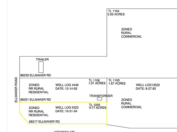 New Year, New Opportunity. Well and Septic in. Level, buildable lot.This RR lot can be purchased separately or with lots: 1104-3.26 acres zoned Rural Commercial.(Mobile home not included)1100-1.67 acres zoned Rural Commercial w/ Hwy 126 frontage.1106-1.01 acres zones Rural Residential RMLS 21667652.