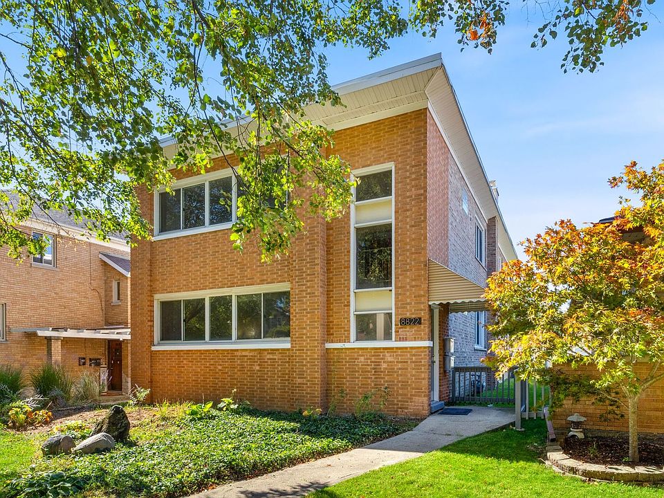 Enormous, rare mid-century 2 flat in a great Evanston location! This 3,360 sq ft brick beauty has 3 bedrooms and 2 full baths per floor (Primary bedrooms have en suite baths!). The basement is wide open and ready for your ideas. Separate HVAC and hot water heaters for each unit. You will love the generous room sizes, updated eat-in kitchens, and stellar closet space. The 45' x 179' lot means great yard space + a 3 car garage and parking pad for 2+ cars. All this near Dempster stores and restaurants, parks and walking trails, and close to Evanston Township High School plus convenient to Northwestern University. Commuter-friendly with quick access to I-94, bus lines, and the Metra and "L" train lines in downtown Evanston. Live in one unit and collect a great rental from the other, great related living option, OR convert into a huge single family house. A real gem!