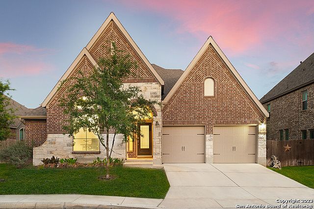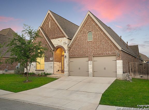 Luxury meets comfort in this gorgeous one-story home at 8822 Haystack Rd! Featuring stunning 12-foot coffered ceilings in the entry and extended entry, this property offers an open and spacious floor plan that is perfect for any lifestyle. Step inside to find a spacious formal dining room with a beautiful ceramic tile floor, as well as a library with French door entry. The open family room with ceramic tile floor flows seamlessly into the kitchen and breakfast area, making it perfect for entertaining guests. The kitchen features an island with built-in seating space, providing ample room for cooking and dining. Relax in style in the master suite, which includes a wall of windows in the bedroom, a garden tub, separate glass-enclosed shower, dual sinks, and a large walk-in closet in the master bath. A guest suite provides additional living space, and the game room with double doors is perfect for entertaining. The mud room adjoins the oversized utility room, offering convenience and practicality. Step outside to the extended covered backyard patio, where you can enjoy the peace of the outdoors. The sprinkler system makes lawn care a breeze, and the two-car garage offers plenty of storage space. This property is truly a gem in a highly desirable area of San Antonio. Don't miss out on the opportunity to make this luxurious home yours! Contact us today to schedule a viewing and experience everything this beautiful property has to offer.