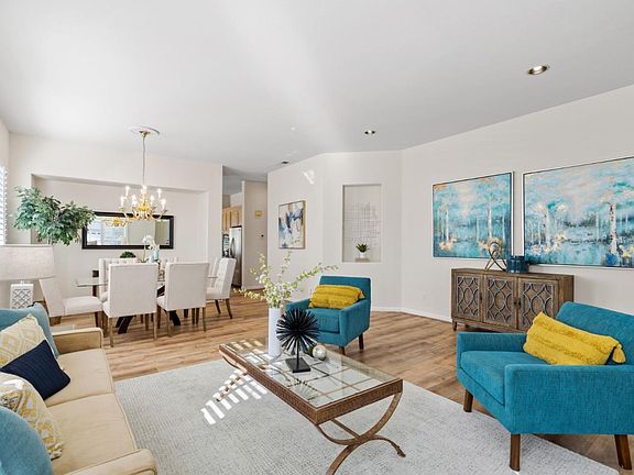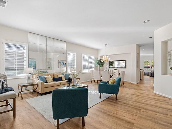 Fabulous, Single Family, Detached, Move In Ready home, located in the sought after Olivas Village, inside the Villages Golf & Country Club. *High ceilings *Spacious *Freshly painted throughout *Beautiful vinyl plank flooring *SS Appliances *Plantation shutters *Recess lighting & Crown molding are just some of what this home has to offer. Stunning wall mounted mirrored feature in the living room, separate dining area. Central island in kitchen, separate family room with fireplace. Large premier bedroom, additional room built in, can be used as third bedroom, office or den. Step outside to the back patio and be met by the sounds and views of an enchanting babbling brook. So peaceful, so captivating, a charming area to sit and relax or enjoy with friends, Low HOA include membership to golf club and access to all the amenities such as tennis, swimming, bocce, pickleball, hiking, gym, club house restaurant, bistro, various social clubs and activities. Love this home, Love this life!