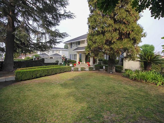 Large home sits on third acre and consists of 4 beds, 4 baths with additional 2 bedrooms 1 bath guest’s quarter. Home has hardwood floors, large wood crown molding and baseboards. Built-ins, cedar line linen closet and Intercom system throughout the house. Entrance has large inviting foyer with detailed wood staircase. Large formal living room has casement windows, fireplace solid wood pocket doors with hanging chandelier. Breakfast eating area has embossed copper ceiling from the Victorian era. Commercial grade Kitchen has 6-burner Viking range w/commercial grade hood, warming drawer, Sub Zero refrigerator, center island w/prep sink and large walk-in pantry to accommodate entertaining essentials. Family room was added in 1990 also has fireplace, custom book cases and two 12 ft French patio doors that lead to back yard. Main has house has all bedrooms upstairs, which creates privacy. Master bedroom has master bath with Jacuzzi tub. Master also has retreat area, fireplace, his and her closets. Upstairs’ full bath has claw tub and skylight. Spacious secure gated back yard with multiple parking areas. Entertaining back with covered built-in BBQ area. Over sized two-car garage with huge attic storage.