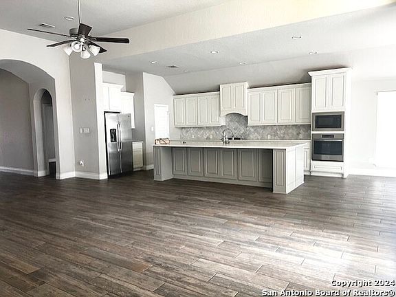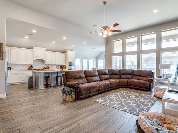 Welcome to 8812 Haystack Rd - where modern design meets everyday comfort! This stunning Perry Home offers the best of both worlds: the peace of mind of a remaining builder warranty and the value of a pre-loved home. Step inside to discover grand 12-foot coffered ceilings and an open-concept layout filled with abundant natural light. The spacious living room features floor-to-ceiling windows, creating a bright and inviting atmosphere perfect for relaxing or entertaining. Just off the living room, you'll find a versatile bonus room - ideal as a home office, media room, game room, or formal dining area. The chef's kitchen is a true highlight, boasting a buffet-style island, ample cabinetry, subway tile backsplash, and a walk-in pantry. A separate dining area overlooks the backyard, offering beautiful outdoor views during every meal. With 4 generous bedrooms, 3 full baths, and a 3-car garage, there's room for everyone to spread out comfortably. Located in the desirable Kallison Ranch community, you'll enjoy access to neighborhood pools, walking trails, and sidewalks, all within minutes of Harlan High School. Here's the cherry on top-this home comes with paid-off solar panels and a transferable warranty, helping you stay cool and save big during those Texas summers! Don't miss this beautiful Perry Home -schedule a tour today!