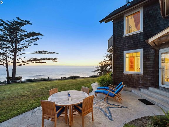 THE ICONIC NANTUCKET-INSPIRED "SEA CLIFF ESTATE" IS FINALLY ON THE MARKET!! This is an EXTREMELY RARE OPPORTUNITY to own a PRIVATE 9.6 ACRE PACIFIC OCEANFRONT BLUFF ESTATE featuring YOUR OWN GATED TRAIL TO A SECLUDED BEACH! Enjoy PANORAMIC OCEAN VIEWS from almost EVERY ROOM, with TIMELESS DESIGN, SUPERB CRAFTSMANSHIP, and UNMATCHED ATTENTION TO DETAIL throughout! Located just SECONDS from the WORLD-RENOWNED BANDON DUNES GOLF RESORT and steps from the SHEEP RANCH COURSE, this is the ULTIMATE COASTAL RETREAT. Approx. 3,085 SF | 4 BEDROOMS | 3.5 BATHS | OFFICE/FLEX ROOM. Recent UPGRADES include: NEWER COMPOSITION ROOF, COPPER GUTTERS, STAINLESS CHIMNEY CAPS, HEAT PUMP, 200AMP ELECTRICAL PANEL, HOT WATER RECIRCULATING PUMP, WHITE OAK HARDWOOD FLOORING, INTERIOR & EXTERIOR PAINT, AUTOMATIC WINDOW COVERINGS, PROFESSIONAL LANDSCAPING, and MORE. Step into the SPA-LIKE NEW HOT TUB just outside the detached ART STUDIO with OUTDOOR SHOWER. Additional 200 SF OUTBUILDING for STORAGE, plus a NEW WELL PUMP, 2,500 GALLON WATER HOLDING TANK, and 250 GALLON BURIED PROPANE TANK. Three STONE FIREPLACES (2 INDOORS + 1 OUTDOOR on PATIO) offer the PERFECT COASTAL AMBIANCE. Fall asleep nightly to the SOUND OF CRASHING WAVES and wake up to JAW-DROPPING VIEWS in EVERY DIRECTION. MUST-SEE VIDEO/VIRTUAL TOUR LINK! A TRUE ONE-OF-A-KIND PACIFIC NORTHWEST LEGACY PROPERTY!
