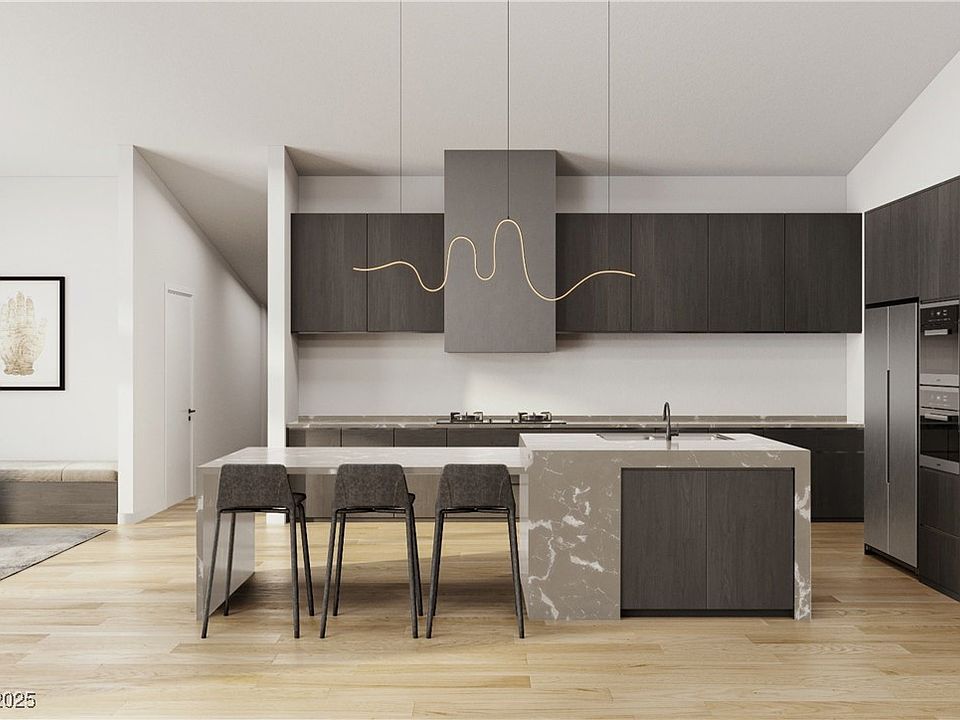 Discover unparalleled luxury & privacy in this exceptional custom single-story estate, perfectly situated in SW Las Vegas. Designed with both sophistication & functionality, this 5,600+sqft residence can be fully enclosed to create your own private compound—an oasis offering seclusion & elegance in the heart of the city. The expansive open floor plan showcases soaring ceilings & oversized sliding glass doors that dissolve the boundaries between in/outdoor living. Natural light cascades through every space, highlighting exquisite finishes & thoughtful design. This residence features 4 spacious beds, including a lavish primary retreat with its own sitting area, spa-inspired bath & direct access to the backyard. A central gourmet chef’s kitchen blends beauty & function with a SS Viking appliance suite, custom cabinetry & an oversized center island—perfect for casual dining or grand entertaining. Outside, the grounds offer endless possibilities. This home is complete with a 4-car garage.