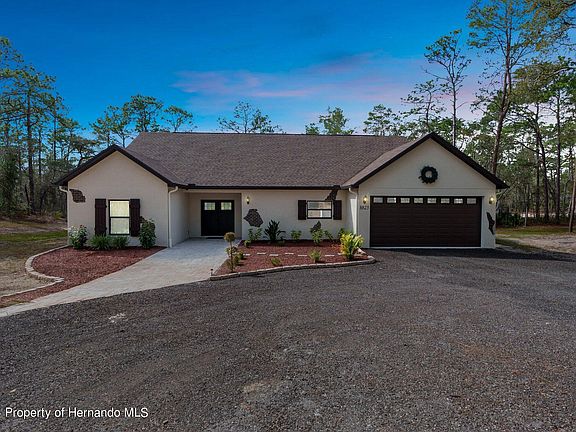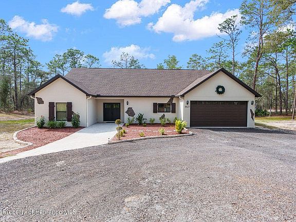 Welcome to your custom-built French country style retreat nestled on 1.8 acres of beautiful landscape. This stunning home boasts 5 bedrooms, 2.5 bathrooms and a 2 car garage. You will find the charming exterior creates an inviting ambiance from the moment you arrive. The home showcases elegant faux exposed brick, adding character and sophistication. Impact-resistant windows and functional window shutters not only enhance curb appeal but also provide peace of mind and protection. Enjoy the bounty of nature with three peach trees, an orange tree, a banana tree, and a grapefruit tree gracing the property. The expansive yard offers all the space for outdoor activities and gardening. There is ample parking space available for a boat, RV or the opportunity to build a detached garage. Residents have the option to become members of the prestigious GlenLakes Country Club 2 miles down the road, granting access to exclusive amenities including a pool and more. The home is wired for hardline internet or DSL, ensuring seamless connectivity for work or entertainment needs. Bask in the spaciousness of high ceilings adorned with wood beams, adding architectural interest and rustic charm to the living areas. Retreat to the luxurious master suite, complete with a walk-in closet and tile shower, providing a spa-like experience and ultimate relaxation. Enjoy the convenience of a second suite with a half bath, perfect for guests or multi-generational living. The half bath also features an exterior door to the back yard. Three more bedrooms are located on the other side of the home, along with another bathroom, providing privacy and comfort for family members or visitors. Entertain with ease in the open-concept layout, where the large custom kitchen flows into the dining and living rooms. This design fosters connectivity and creates a welcoming atmosphere for gatherings and everyday living. Come experience the perfect blend of luxury, comfort, and convenience in this meticulously crafted residence. Don't miss the opportunity to make this dream home yours!