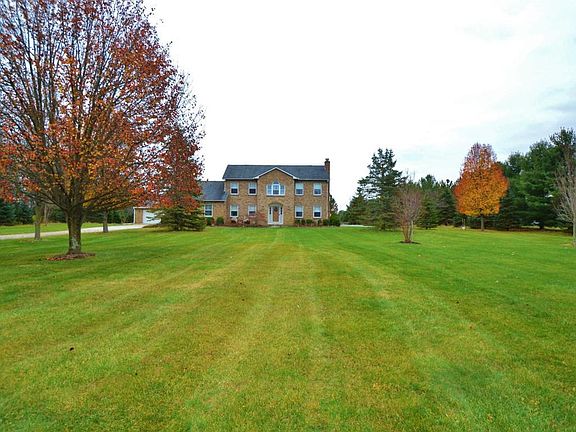 Beautiful Brick & stucco 2story home on over 6 acres of tree lined views (almost 300 trees). Pristine ash hardwood floors throughout. 3 good size bedrooms upstairs with a loft that could be transformed into 4th bedroom. Huge master suite w. 2 closets including walk-in off the oversized master bath. Full basement w. storage, new furnace & water heater. 2.5 car attached garage plus a 2.5 car additional building off the concrete drive. Enjoy your private screened porch that overlooks your patio and above ground pool to relax in. Greenhouse, Plenty of cleared land to enjoy with mature trees for ample privacy. Beautiful kitchen offers wine bar, eating island, huge dining space. 1st floor mud room with laundry and storage. Minutes from downtown- dead end street near the Big Darby Creek
